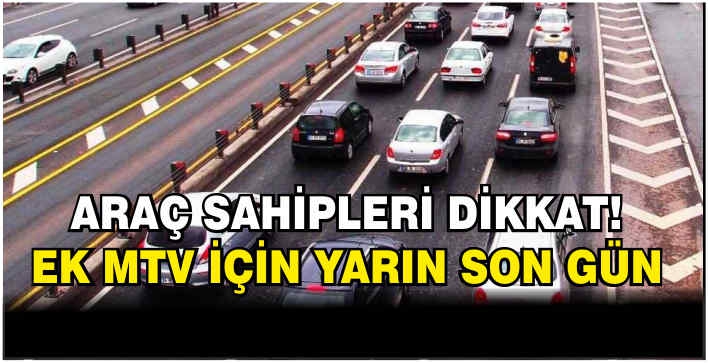 ALPARSLAN DİYARI-Ek motorlu taşıtlar vergisinin (MTV) ikinci taksiti için ödeme süresi yarın sona erecek.