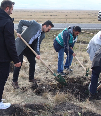 150 fidanın toprakla buluşturulduğu etkinlikte, fidanlara can suyu verildi.