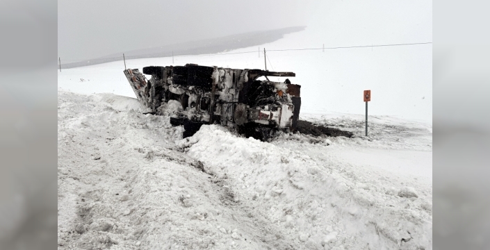 Ardahan-Kars kara yolunun Putka Gölü mevkisinde, kar küreme ve tuzlama çalışması yapan bir iş makinesi devrildi. Kazanın ardından olay yerine jandarma, polis ve Karayolları ekipleri sevk edildi.