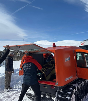 Destek talebi üzerine bölgeye gelen AFAD'a ait paletli araca binen sağlık ekipleri, hastaya ulaşıp ilk müdahaleyi evinde yaptı.