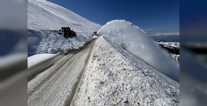 Karayolları 183. Şube Şefliği ekipleri, karla mücadelenin yanı sıra yol genişletme çalışmaları da gerçekleştiriyor. Bölgedeki yoğun kar kütleleri, kepçe, greyder ve kar savurma makineleri ile temizleniyor.
