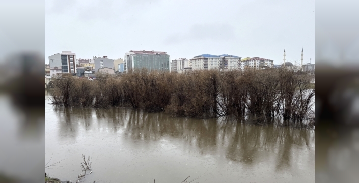 Ardahan'da etkili olan yoğun kar ve sağanak yağış, Kura Nehri'nin debisini yükseltti.
