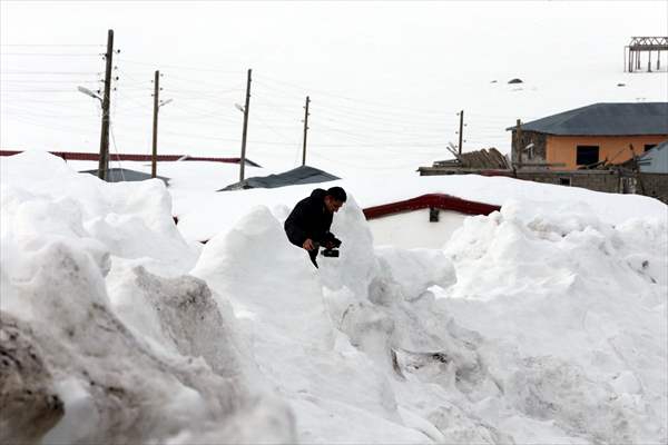 Yaylacılar taşınmak için karların erimesini bekliyor.