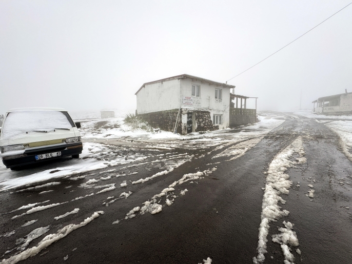 Hava sıcaklığının 7 dereceye düştüğü ilçenin yüksek kesimlerine kar yağdı.