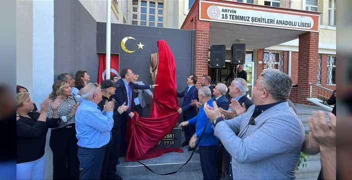 Artvin 15 Temmuz Şehitleri Anadolu Lisesi'nde yeni bir Atatürk Anıtı törenle açıldı. Öğrenciler, öğretmenler, veliler ve yerel yöneticilerin katıldığı törende, anıtın yapımında Artvin Ticaret Borsası başta olmak üzere birçok kurumun desteği görüldü.