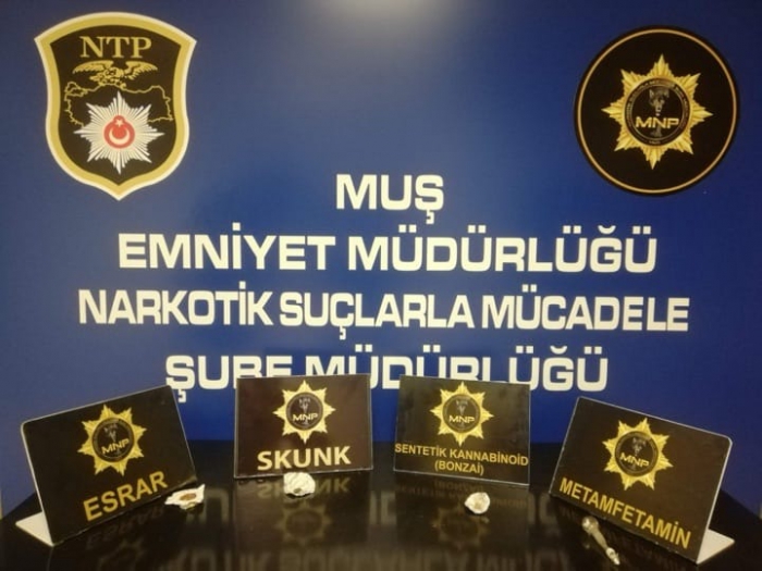 “Narkotik olaylarının aydınlatılması ve suçun önlenmesine yönelik yapılan çalışmalarda 35 olayın aydınlatıldığı 41 şahsın yakalandığı ve 2 şahsın çıkarıldığı mahkemece tutuklandı. Toplamda 49,52 gram Esrar, 54,89 gram Sentetik Kannabinoid (Bonzai), 1526,63 gram Metamfetamin, 56,95 gram Skunk, 16,91 gram Eroin, 5 adet Sentetik Ecza Hap, 1 adet dikili Hint Keneviri ve 1 adet Ruhsatsız tabanca ele geçirilmiştir.