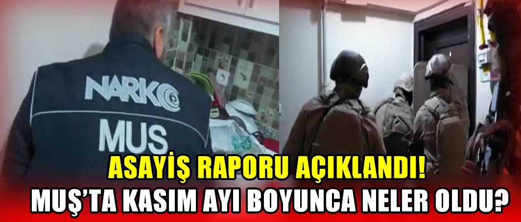 ALPARSLAN DİYARI- Muş Emniyet Müdürlüğü Kasım ayı boyunca kentte yapılan çalışmaları paylaştığı Asayiş raporu ile duyurdu.