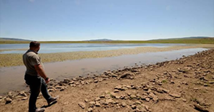 Ördek, angut, balıkçıl gibi birçok kuşa ev sahipliği yapan gölde, sıcaklıkların etkisiyle yaklaşık 8 metre çekilme yaşandı.