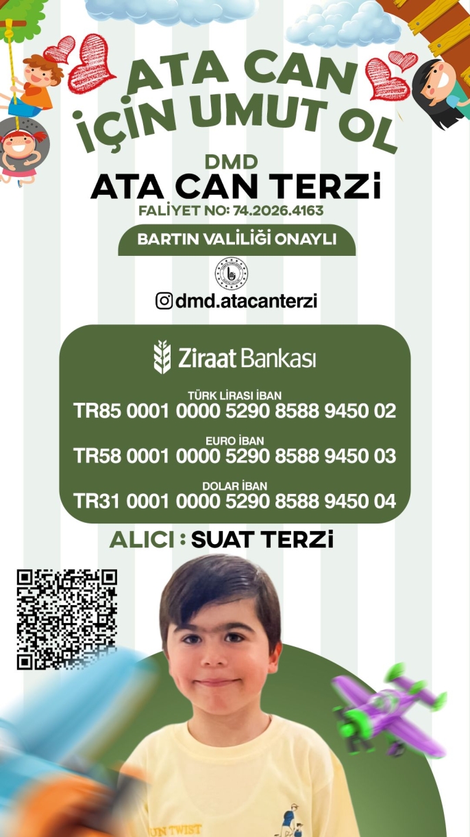 Valilik izniyle gerçekleştirilen kampanyanın faaliyet numarasının 74.2026.4163 olduğu belirtilirken, Ata Can’ın tedavisi için gerekli olan maddi desteğin sağlanması hedefleniyor. Kampanya kapsamında toplanan bağışların, Ata Can’ın tedavi sürecinde umut olacağı ifade edildi.