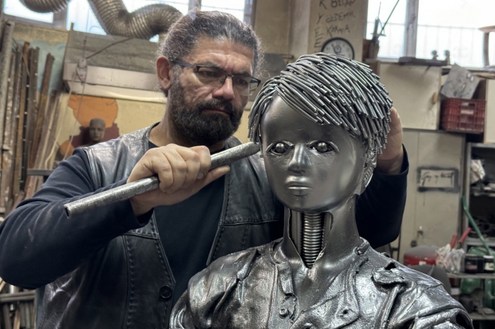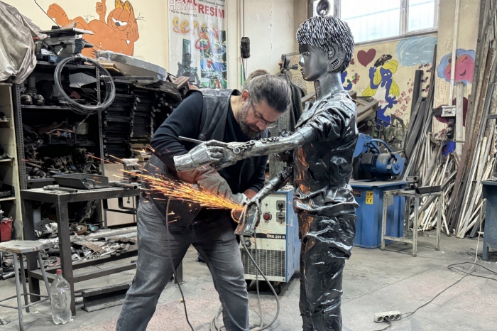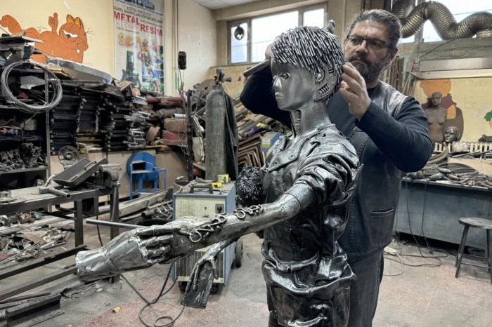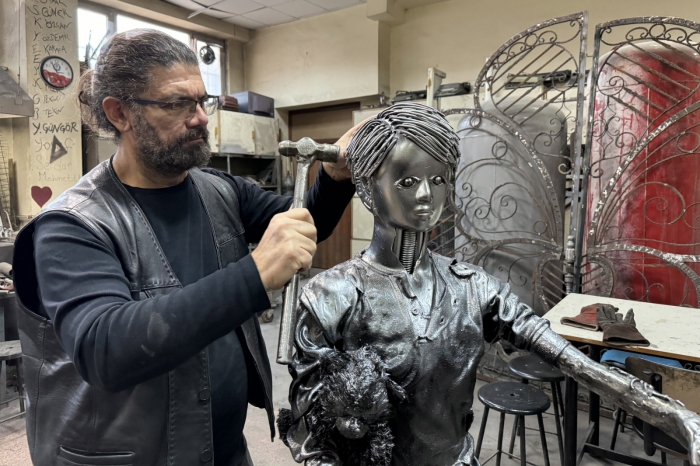 Keçeci, 15 yıldır atık metallerden 300'ü aşkın heykel ve proje niteliğinde çeşitli eserler yaptığını, kendisini en çok zorlayan çalışmasının ise bu eser olduğunu belirtti.