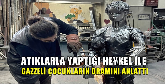 Bu eserde endüstriyel atık metalleri kullandığını, bununla birlikte kumaş ve plastik gibi farklı katı atıkları da tercih ettiğini, eseri yaklaşık 45 günde tamamladığını söyleyen Keçeci, "Gazze'de çocuk olmak" adını verdiği heykeli çeşitli sanat platformlarda sergilemeyi planladığını kaydetti.