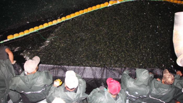 Teknenin 25 kişilik mürettebatı, balıkla dolan ağları yaklaşık 2 saatte topladı.