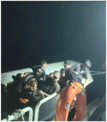 Sahil Güvenlik ekipleri, Midilli Adası'na doğru gitmekte olan lastik botu durdurarak 37 düzensiz göçmeni yakaladı.