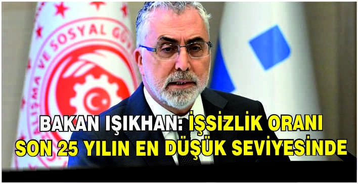 Ülkenin koşullarına uygun ve çağın ihtiyaçlarına yönelik birçok uygulamayı hayata geçirmeye devam ettiklerini belirten Işıkhan, "Son 25 yılın en düşük seviyesine gerileyen işsizlik oranı, Ulusal İstihdam Stratejimiz doğrultusunda hedeflerimize uygun seyrediyor. İşsiz sayısı, bu yılın ilk çeyreğinde, bir önceki çeyreğe göre 183 bin kişi azalarak 2 milyon 884 bin kişiye geriledi. İşsizlik oranı ise bir önceki çeyreğe göre 0,4 puanlık, bir önceki yılın aynı çeyreğine göre 0,6 puanlık azalış ile yüzde 8,2 seviyesinde gerçekleşti." ifadelerini kullandı.
