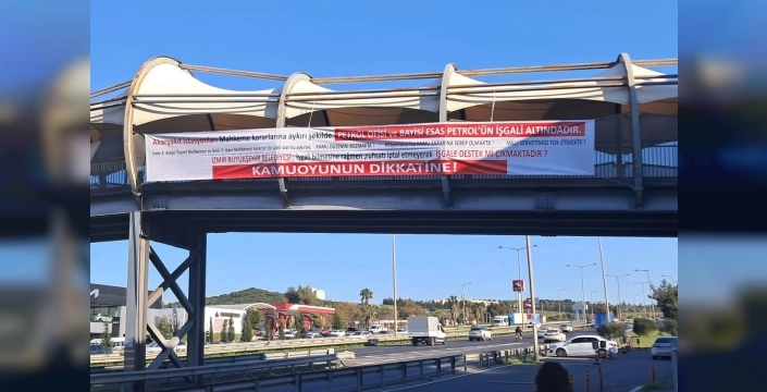 Tekinalp, üst geçit ve alışveriş merkezi binasına astığı pankartlarla durumu dikkat çekti. Pankartlarda, “Akaryakıt istasyonları mahkeme kararlarına aykırı şekilde Petrol Ofisi ve bayisi Esas Petrol’ün işgali altındadır” yazarken, İzmir Büyükşehir Belediyesi'ne de tepki gösterdi. Tekinalp, belediyenin durumu bilmesine rağmen ruhsat iptali yapmadığını savundu.