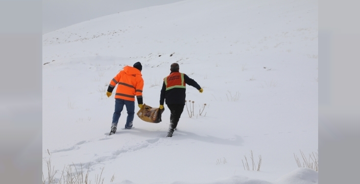 Van'ın Başkale ilçesinde, hava sıcaklığının düşmesi ve arazinin karla kaplanmasıyla zorlanan yaban hayvanları için harekete geçildi.