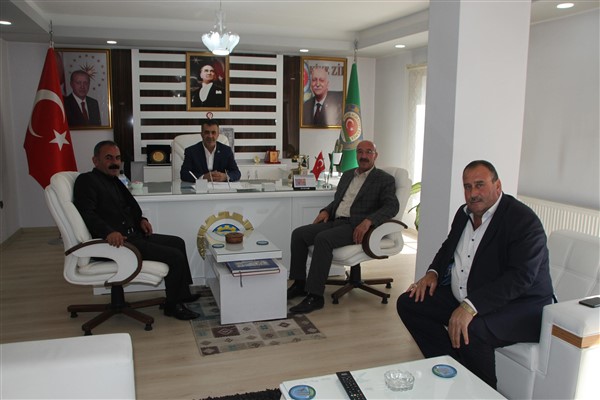 Malazgirt Ziraat Odasına iadeyi ziyaret gerçekleştiren Muş Damızlık Birliği Başkanı Cahit Aral ve Malazgirt Damızlık Birliği Yöneticisi Fatih İbek, başkan kılıç tarafından kapıda karşılandı.