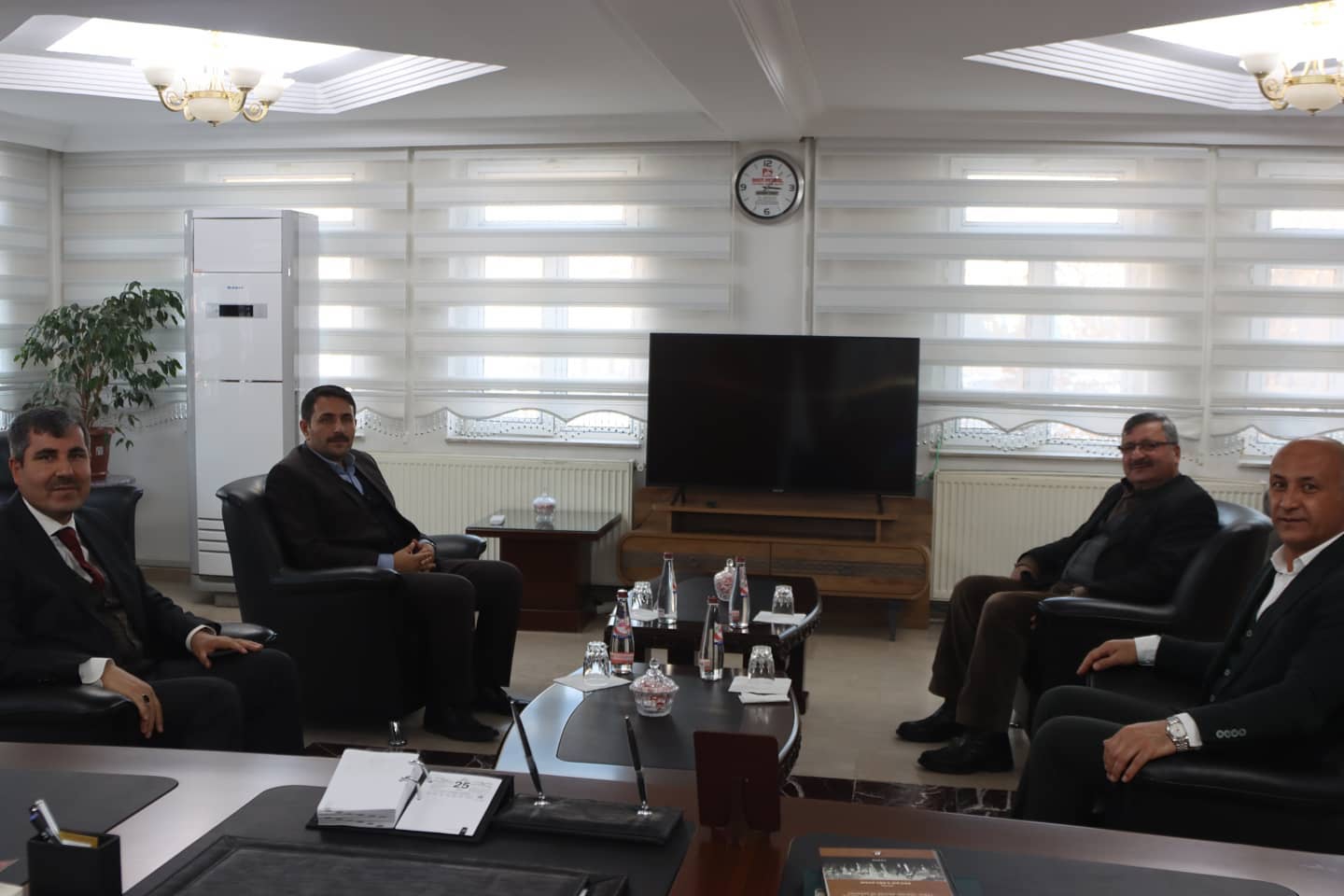 Malazgirt belediyesi hizmet binası önünde Belediye Başkanı Cengiz Altın ve encümenler tarafından karşılanan Başkan Asya ve beraberindeki heyet Belediye Başkanı Cengiz Altın’ı makamında bir araya geldiler.