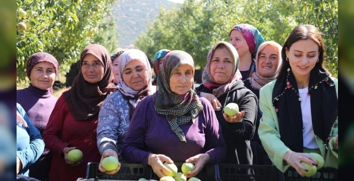Sohbetin ardından Başkan Caran, kadın çiftçilerle birlikte bahçeye girerek armut hasadına aktif olarak katıldı. Üretim coşkusuna ortak olan Caran, kadın emeğinin tarımdaki yerinin altını çizdi.