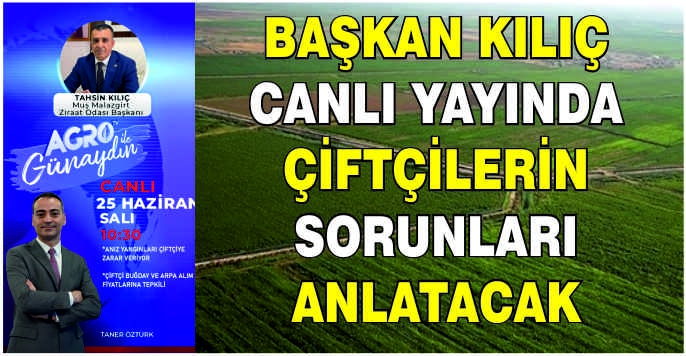 ALPARSLAN DİYARI- 25 Haziran Salı günü saat 10:30'da başlayacak olan programda Kılıç, çiftçilerin karşılaştığı sorunları ele alacak.