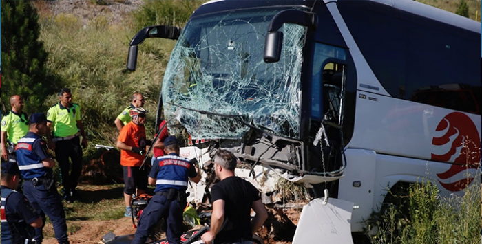 Karayolunda savrulmaya başlayan otobüs, yoldan çıkarak derin çukurun bulunduğu engebeli araziye uçtu. Sabah saatlerinde meydana gelen kazada otobüste bulunan 35 kişi yaralandı. Olay yerine çok sayıda sağlık ve itfaiye ekibi sevk edildi.