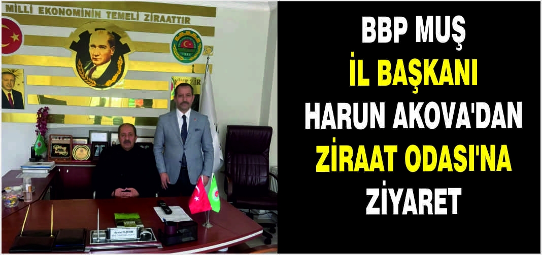 Ziraat Odası Başkanı Hakim Yıldırım ise ziyaretten duyduğu memnuniyeti dile getirerek Muş’ta tarımın gelişmesi için kurumların ve sivil toplum kuruluşlarının iş birliği içerisinde çalışmasının önemli olduğunu ifade etti. Çiftçilerin sorunlarının çözümü için her zaman diyalog ve ortak akıl ile hareket edilmesi gerektiğini vurgulayan Yıldırım, nazik ziyaretlerinden dolayı BBP Muş İl Başkanı Harun Akova’ya teşekkür etti.