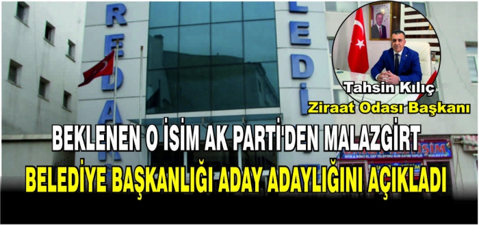 Aday adaylık başvurularında sona gelinirken Malazgirt Belediyesi için ilk başvuru Malazgirt Ziraat Odası Başkanı Tahsin Kılıç’tan geldi.
