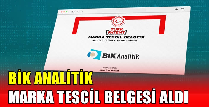 6769 sayılı Sınai Mülkiyet Kanunu kapsamında 24 Ocak 2024 tarihinde 35, 38 ve 42 numaralı mal ve hizmet sınıflarında onay alan BİK Analitik markası, başvurunun yapıldığı 15 Eylül 2023 tarihinden itibaren 10 yıl süreyle koruma altına alındı.