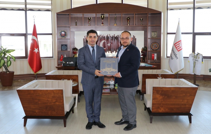 Muş Alparslan Üniversitesi Rektörü Prof. Dr. Mustafa Alican’ı da ziyaret eden Basın İlan Kurumu Diyarbakır Bölge Müdürü Hasan Kutay, Rektör Alican’a misafirperverliğinden dolayı şükranlarını sundu.