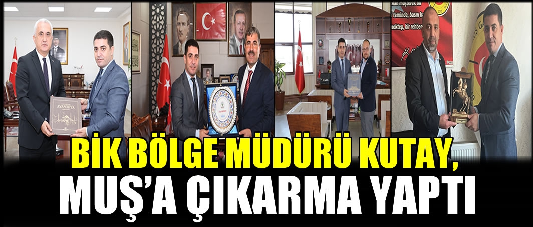 Muş’a ziyaretleri kapsamında Muş Valisi Avni Çakır, Belediye Başkanı Feyat Asya, Muş Alparslan Üniversitesi Rektör Prof. Dr. Mustafa Alican ve Muş Gazeteciler Cemiyeti Başkanı Emrullah Özbey’i makamında ziyaret etti. Muş’ta yapılan ziyaret kapsamında Vali Avni Çakır ile bir araya gelen Basın İlan Kurumu Müdürü Hasan Kutay, Vali Çakır’ın yoğun çalışmaları arasında kendilerine gösterdiği ilgi ve alakadan dolayı teşekkürlerini sundu.