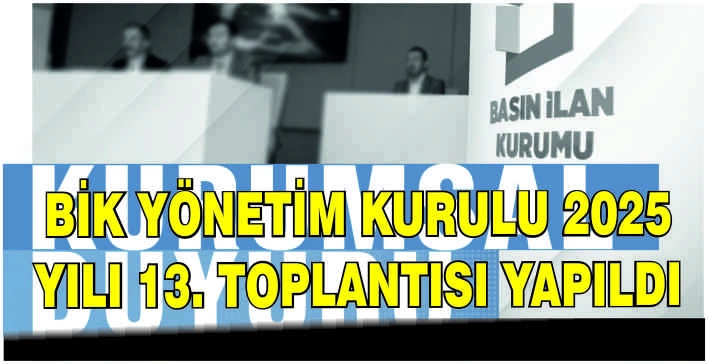 ALPARSLAN DİYARI- Basın İlan Kurumu Yönetim Kurulu toplantısında resmî ilan ve reklam yayımıyla alakalı süreli yayınlar hakkında yapılan işlemler, internet haber sitelerinin alan adı değişikliği talepleri, basın çalışanlarının borç para talepleri, süreli yayınların kredi talepleri ile diğer idari konular görüşüldü.
