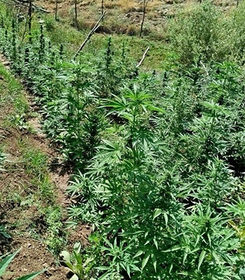 Bu kapsamda ilçedeki 5 noktada arama yapan ekipler, 1827 kök skunk ve 590 kök Hint keneviri ele geçirdi.