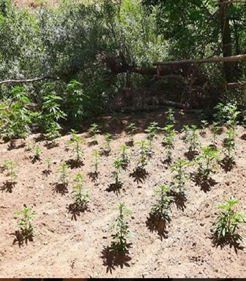 Operasyonda iki tarlaya ekilmiş 2 bin 507 kök kenevir bitkisi ile 280 metre sulama hortumu ele geçirildi.