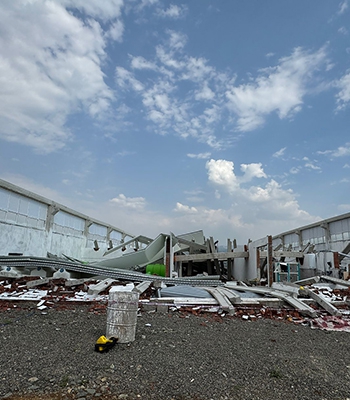 ALPARSLAN DİYARI- Garip köyünde bir girişimci tarafından büyükbaş hayvanların barınması için yapımı süren ahırın çatısı henüz bilinmeyen nedenle çöktü.