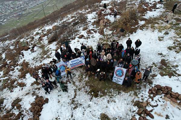 Kuzey Yüzü Dağcılık Kulübü ve Gençlik Merkezinin de destek verdiği etkinliğe katılan 200 öğrenci, Bingöl-Elazığ kara yolunun Yolçatı köyü mevkisindeki yaklaşık 2 bin rakımlı dağa tırmanış gerçekleştirdi. 1,5 saat süren yürüyüşün ardından gençler dağın zirvesine ulaştı.