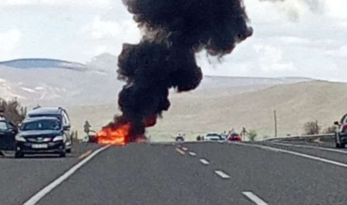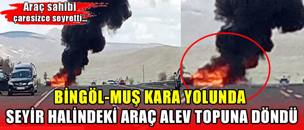 ALPARSLAN DİYARI- Bingöl-Muş kara yolun 20. kilometresinde 7 Evler köyü mevkiinde bilinmeyen bir sebeple seyir halindeki araç alev aldı.