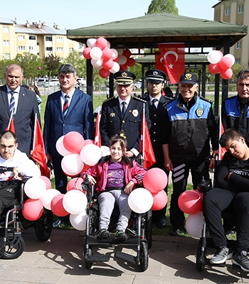 Kent Park'ta İl Emniyet Müdürü Orhan'ın katılımıyla düzenlenen programda tekerlekli sandalyeler engelli bireylere hediye edildi. Çocuk ve gençlerle sohbet eden Orhan, her zaman kendilerine destek vereceklerini iletti.