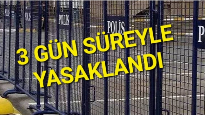 "Can ve mal güvenliğini, kişi dokunulmazlığını, tasarrufa müteallik emniyetin ve kamu esenliğinin sağlanmasının güçleşeceği gerekçesi ile açık alanlarda yapılabilecek her türlü eylem, toplanma, yürüyüş, basın açıklaması, açlık grevi, oturma eylemi, miting, stant açma, çadır kurma, bildiri, broşür dağıtma, afiş, pankart asma il ve ilçe mülki sınırlarımız içerisinde (jandarma bölgesi dahil), 12.10.2023 günü saat 00.01'den 14.10.2023 günü saat 23.59'a kadar 3 gün süreyle yasaklanmıştır."