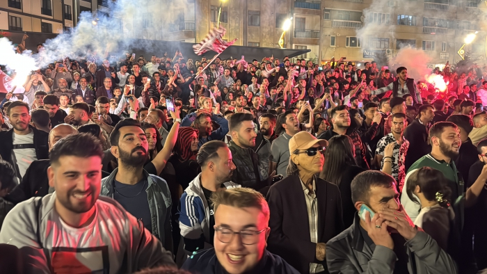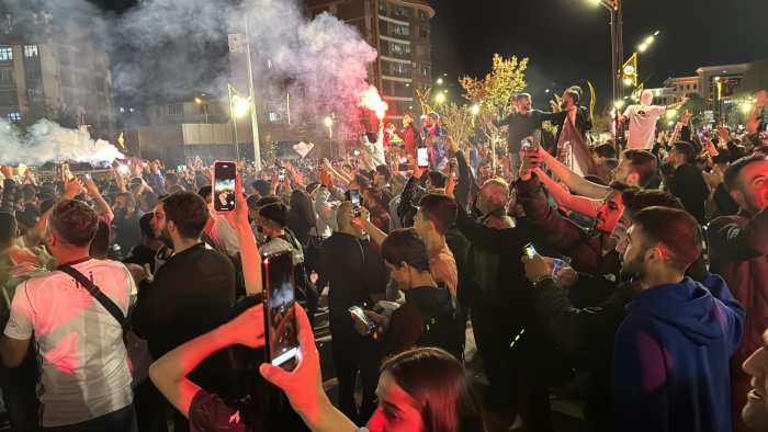 Davul-zurna eşliğinde şampiyonluğu kutlayan bazı taraftarlar, renkli görüntüler oluşturdu.