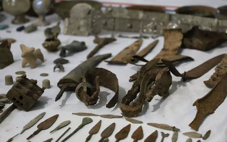 Şüphelinin adresinde yapılan aramada, Roma, Bizans, Artuklu ve Osmanlı dönemlerine ait olduğu değerlendirilen 19 bin 95'i sikke olmak üzere metal yüzük, ok uçları, tedavi araçları, altın görünümlü obje, mızrak ucu, metal kap ve figürler, mühür, kama, yüzük, cam cisim, balta, kemer gibi toplam 22 bin 278 parça tarihi esere el konuldu.