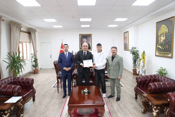 ALPARSLAN DİYARI-Tedavi sürecini başarıyla tamamlayan gencimiz; annesi, Muş Gençliği Uyuşturucu ile Mücadele Derneği Başkanı Alparslan Bingöl ve İmamı Şafii Camii Din Görevlisi M. Fecri Yıldırım ile birlikte Avni Çakır’ı makamında ziyaret etti.