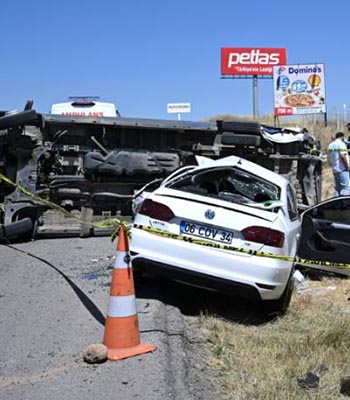 Ankara’da bir yolcu minibüsü ile iki aracın karıştığı feci kazada 1 kişi hayatını kaybederken, 10 kişi yaralandı.