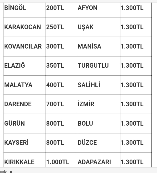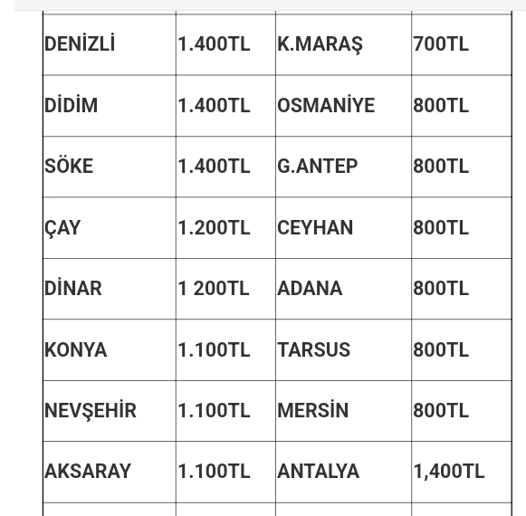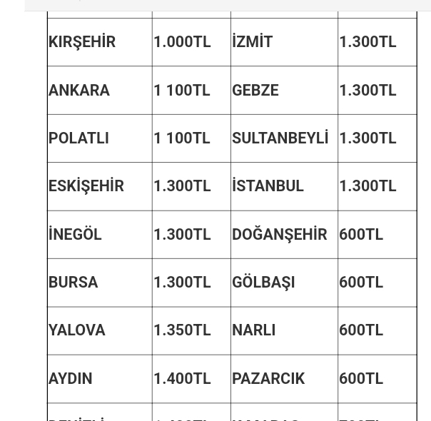 Muş’tan veya Muş’a hareket edecek otobüslerin 14 Ağustos itibarı ile bilet fiyatları şöyle: