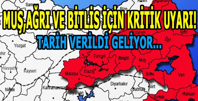 ALPARSLAN DİYARI- Meteoroloji uzmanı Orhan Şen, Elazığ, Erzincan, Erzurum, Malatya, Tunceli, Kars, Iğdır, Ardahan, Van, Bingöl, Hakkari, Bitlis, Ağrı ve Muş illerimiz için tarih verdi. Batı illerimizden size doğru kayacak. Şimdiden haberiniz olsun.