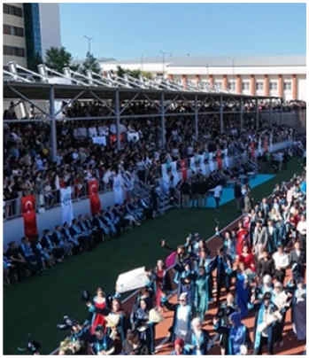 Öğrencilerin kep atması ve konser etkinliğinin ardından son bulan programa üniversitenin akademik ve idari personeli, kurum amirleri, sivil toplum kuruluşu temsilcileri, öğrenciler ve aileleri katıldı.