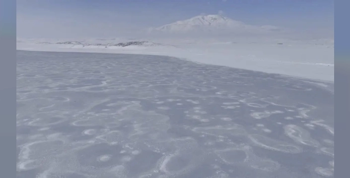 Bitlis'in Adilcevaz ilçesi sınırlarında yer alan ve 'Kuş cenneti' olarak tanınan Arin Gölü, etkili olan yoğun soğuk hava dalgası nedeniyle yüzeyinin büyük bir kısmında buz tuttu. Her yıl yüzlerce farklı kuş türüne ev sahipliği yapan bu doğal güzellik, kışın sert yüzünü göstererek adeta dondu.