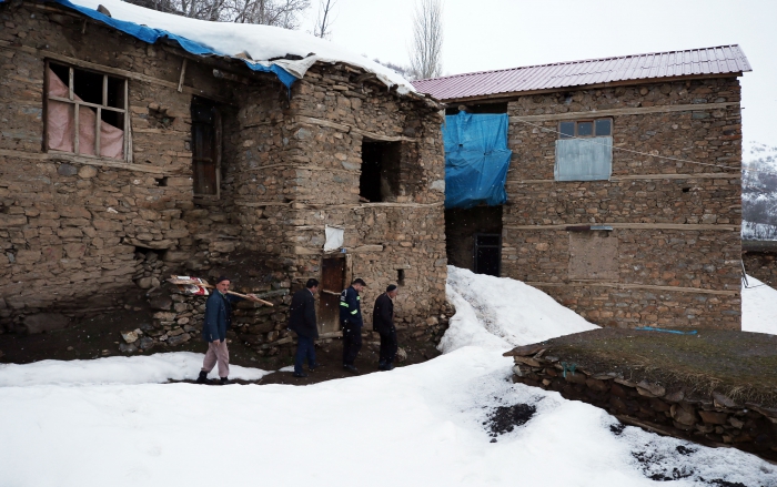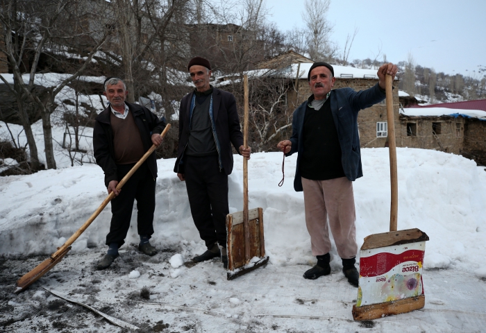 Damlarda 80 santimetreyi bulan kar kütlesini küreklerle kalıplar halinde kesip atan köylüler, kış boyunca birçok kez bu işlemi yaparak hem damların çökmesini hem de tavandan su akmasını önlüyor.