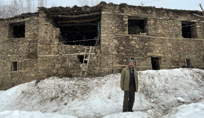 Gögercin, "Şu an damda 70-80 santimetre kar var. Arkadaşlarla damdaki karı temizledik. Rakımı yüksek olduğu için köyümüze çok fazla kar yağıyor. 4-5 ay kar örtüsü yerde kalıyor. Bu sürede zorluk yaşıyoruz." dedi.