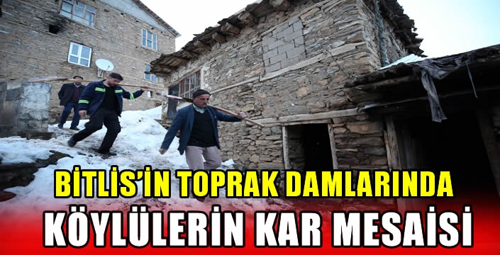 Hizan ilçesine 54 kilometre mesafedeki 2109 rakımlı Yukarıayvacık köyü sakinlerinin de taş evlerin toprakla kaplı damlarında biriken karı temizleme mesaisi devam ediyor.