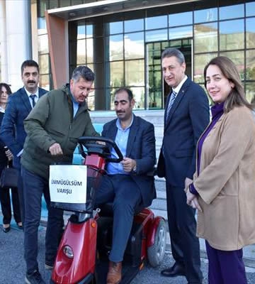 Sosyal Yardımlaşma Vakfı'na gönderilen akülü araçlar, Valilik bahçesinde düzenlenen programla üç engelliye teslim edildi.